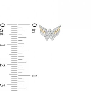 In fiercest style, these diamond stud earrings translate epic heroism into modern fashion. Crafted in warm 10K gold, each earring showcases diamond-lined ribbons sculpted into the classic “WW” logo at the center. Polished ribbons complete the split triple-row wing design. Radiant with 1/8 ct. t.w. of diamonds and a brilliant buffed luster, these post earrings secure comfortably with friction backs. This exclusive fine jewelry collection inspires you to wear your strength, confidence and power.