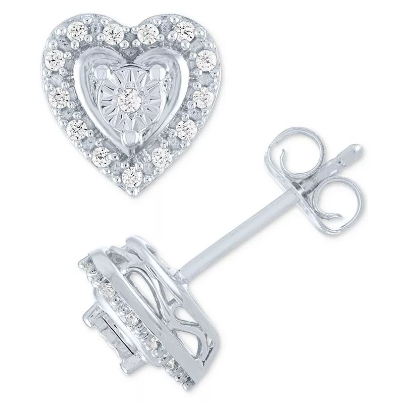 Diamond Heart Earrings (1/10 ct. t.w.) in Sterling Silver or Sterling Silver & 14k Rose Gold-Plate